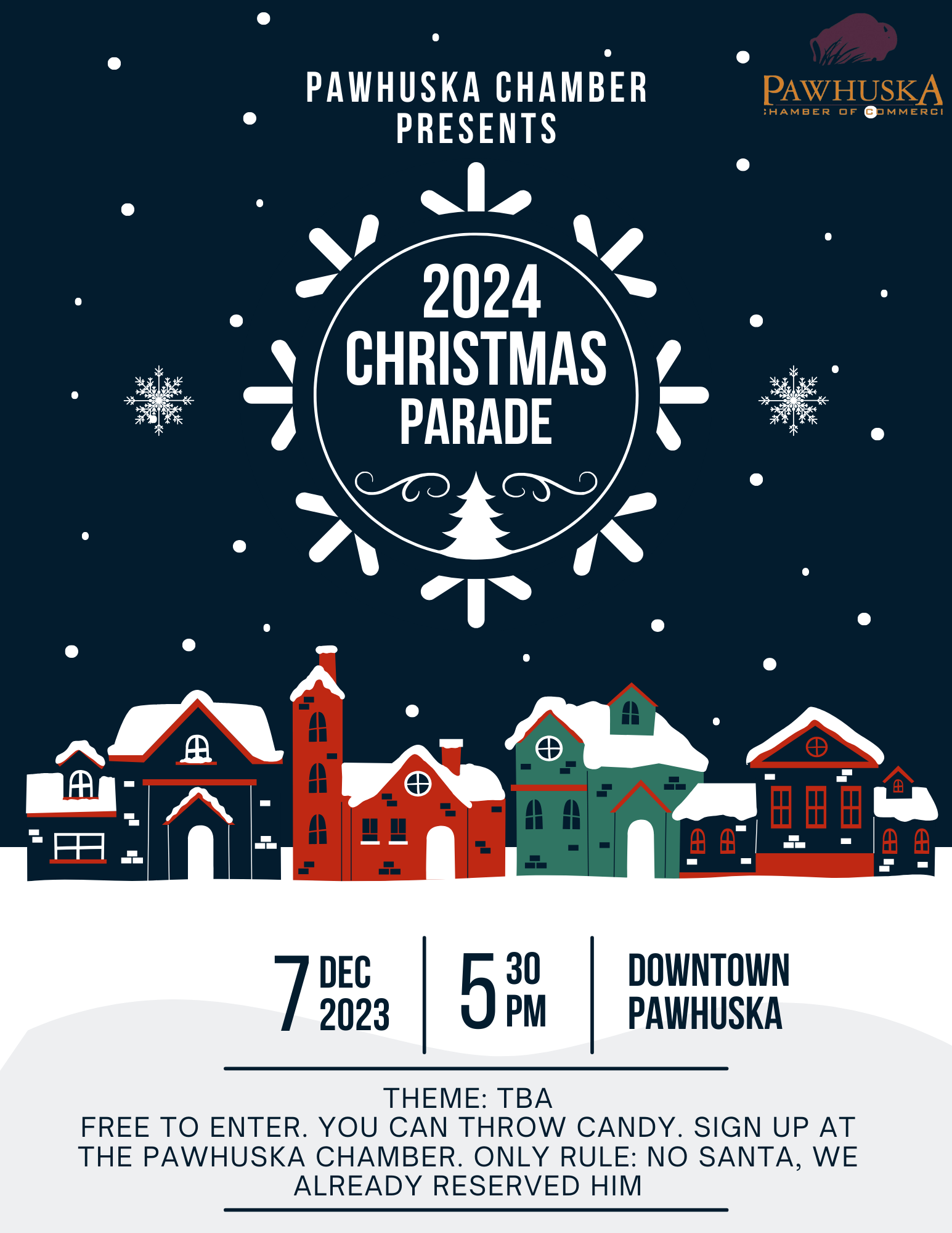 Free parking is behind the Pawhuska Chamber of Commerce, City Hall, and 6th Street next to the Post Office!